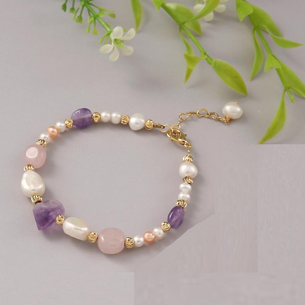Materiale: metallo per bigiotteria, imitazione perla, imitazione ametista, imitazione avventurina