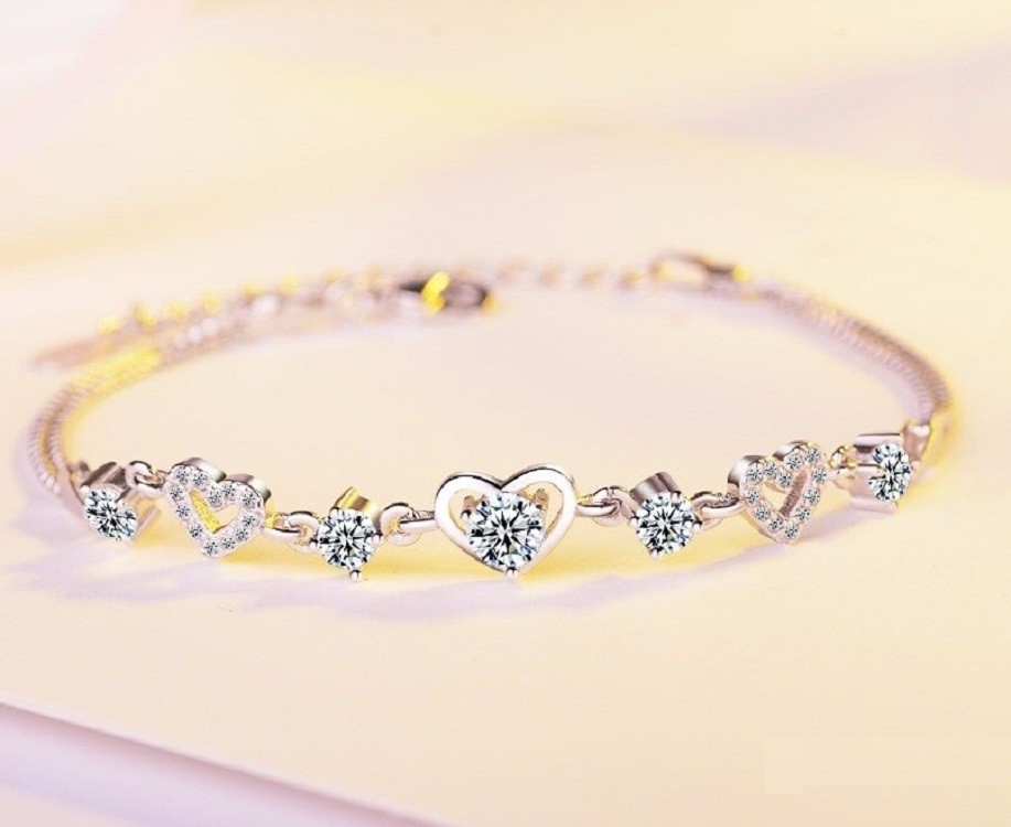 Pagina iniziale Pagina iniziale Gioielli e orologi Gioielli e orologi da donna Braccialetti da donna Bracciale scintillante da donna a forma di cuore con pietre