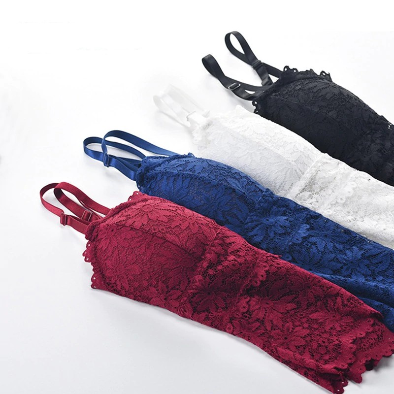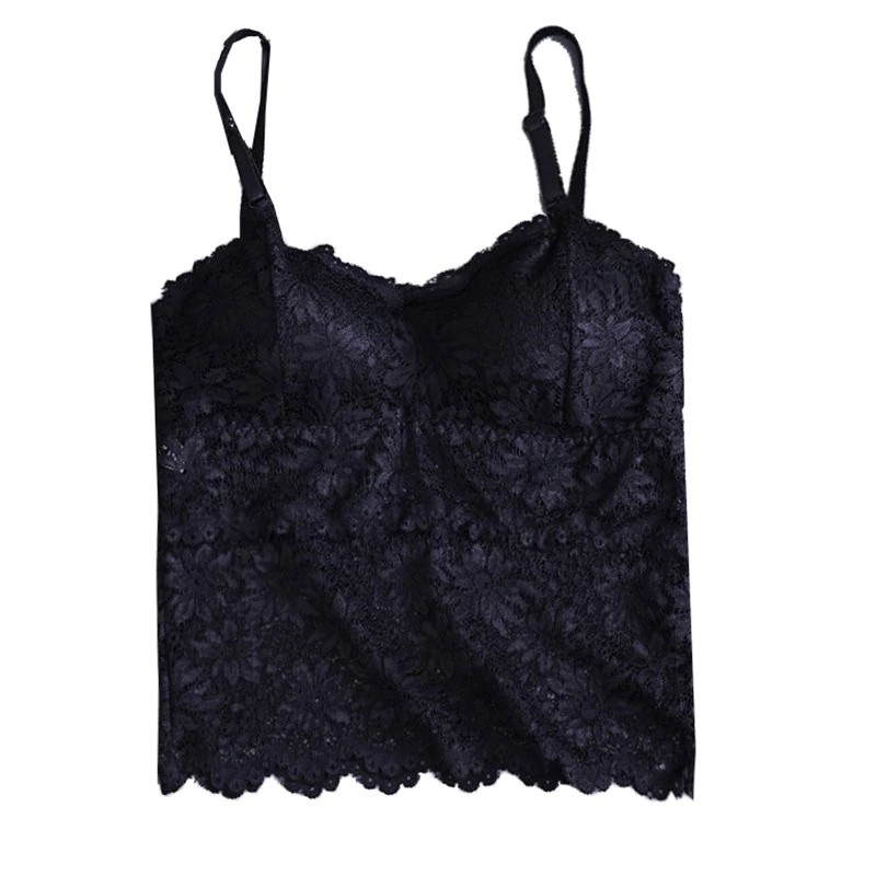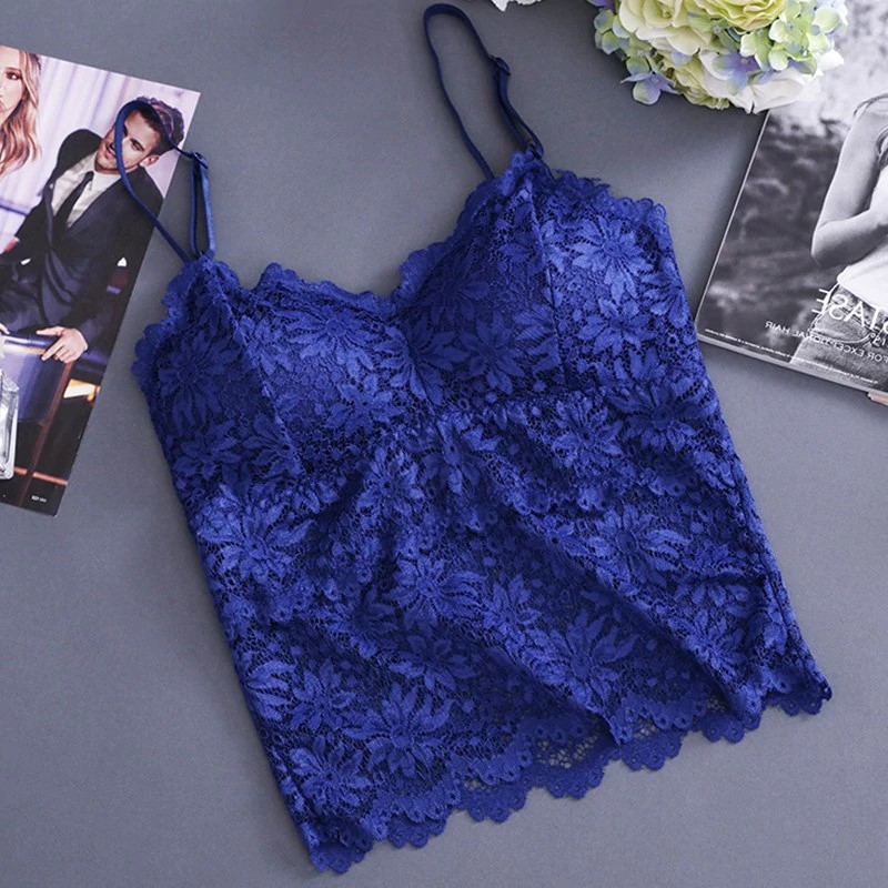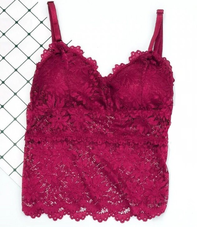 Questa lussuosa bralette ha un corpetto in pizzo allungato.