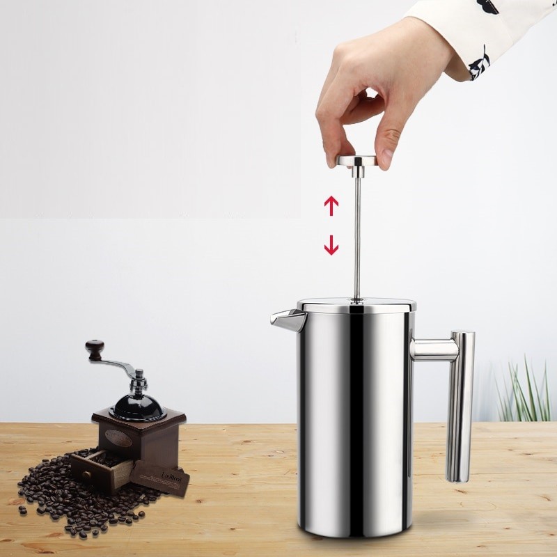Nasprite caffè macinato nella caffettiera, versate acqua e poi semplicemente premete il filtro verso il basso e gustatevi un caffè perfetto.