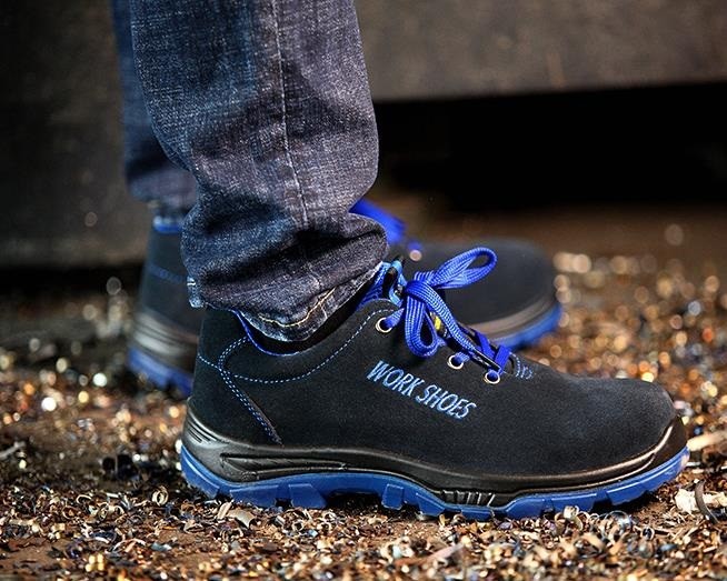 Le calzature di sicurezza da lavoro con punta in acciaio proteggono i piedi da infortuni.