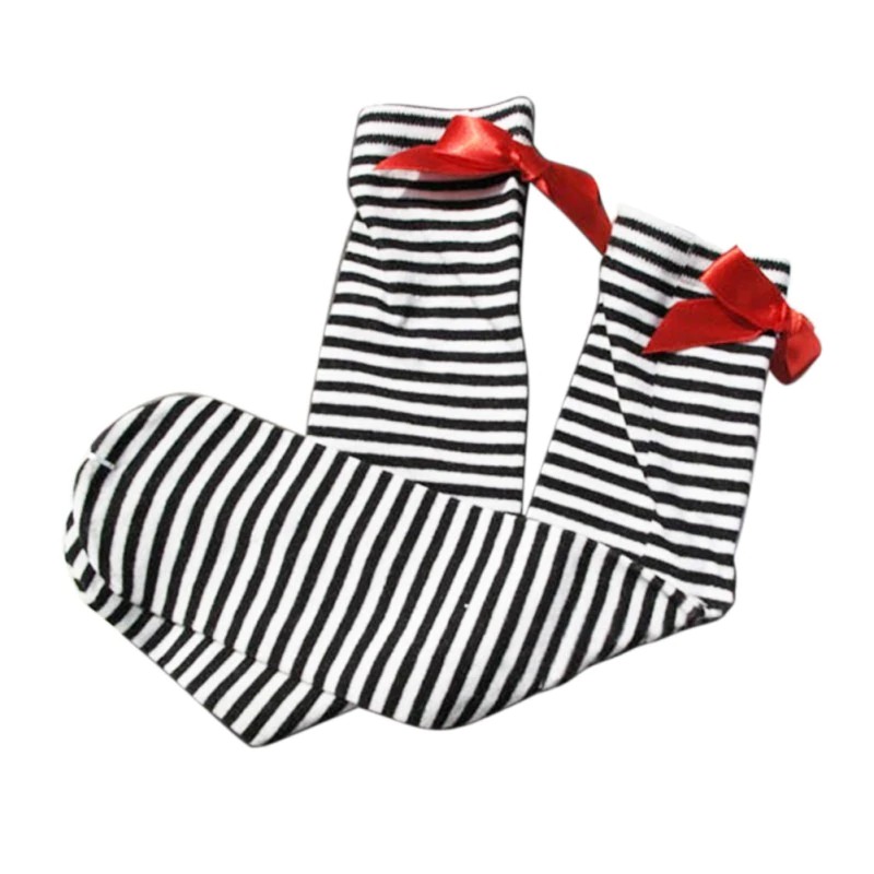 Calze in design a righe. Sono decorate con un piccolo fiocchetto.