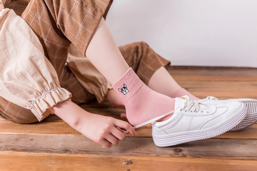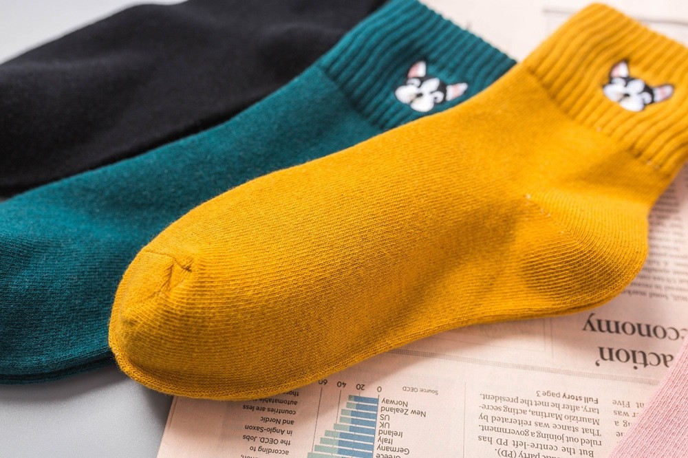 Le calze da donna con bulldog ricamati ti piaceranno.