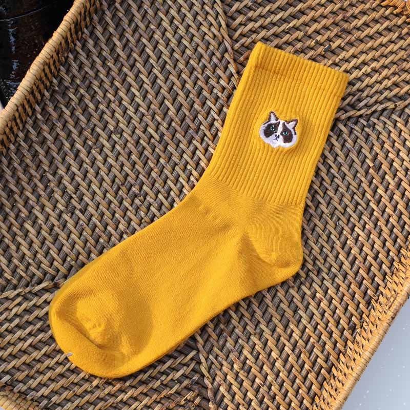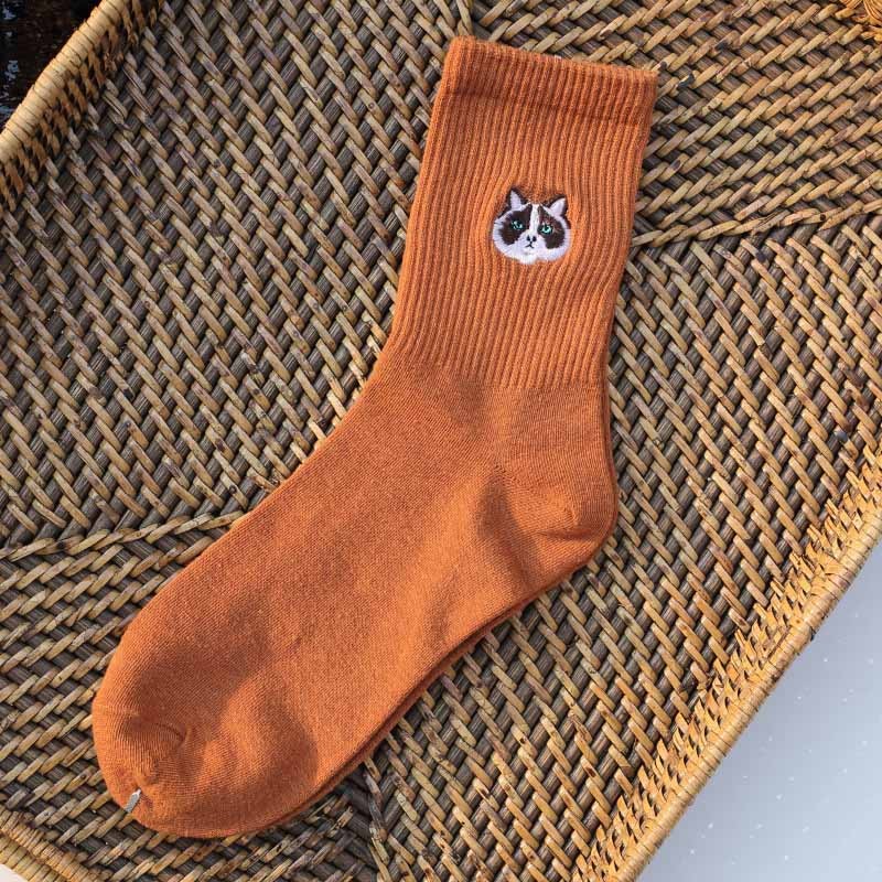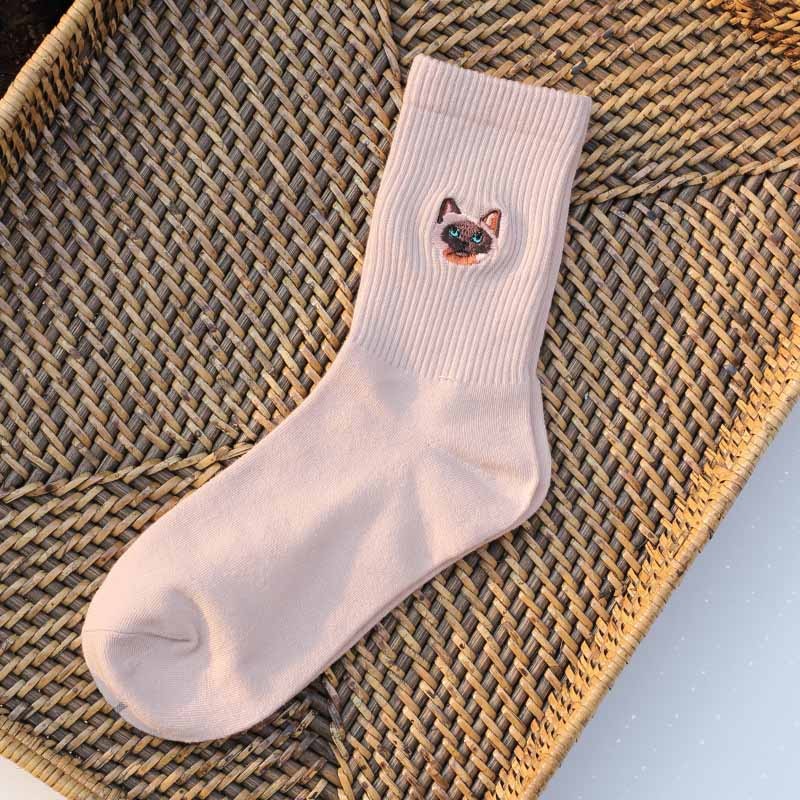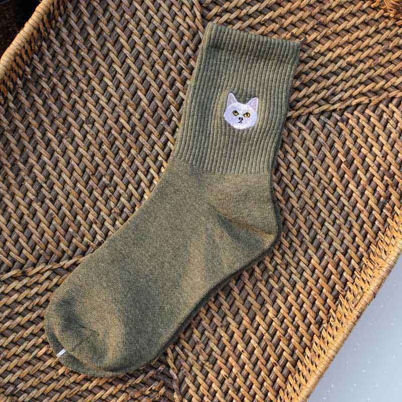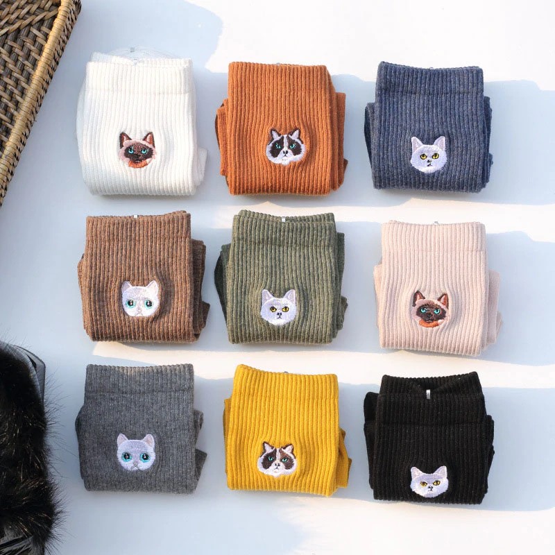 Le calze sono comode e hanno ricamati diversi tipi di gatti.