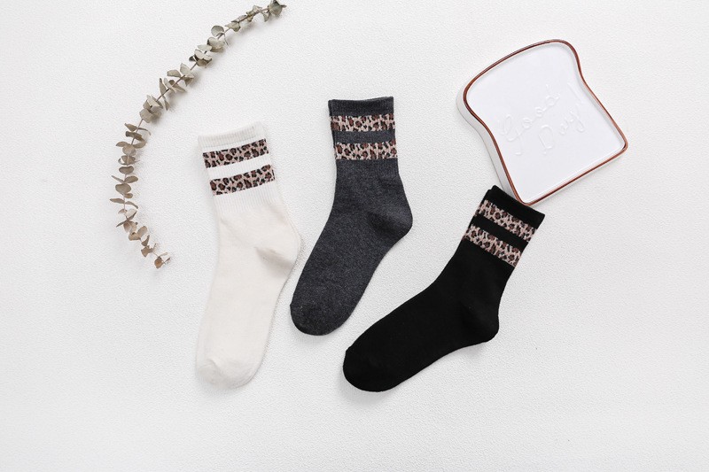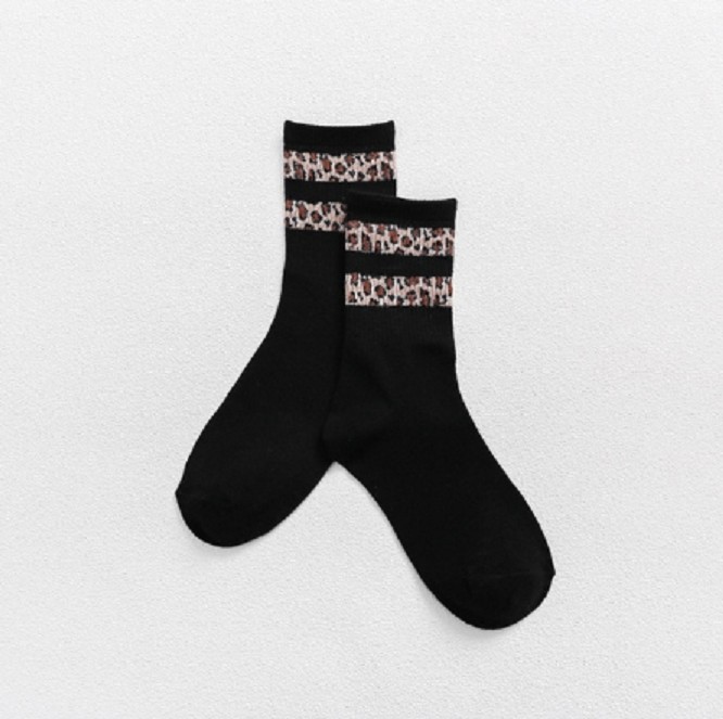 Le calze hanno strisce con motivo leopardato sul bordo superiore.