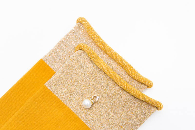 Le calze sono eleganti e la parte superiore è decorata con una piccola perla.