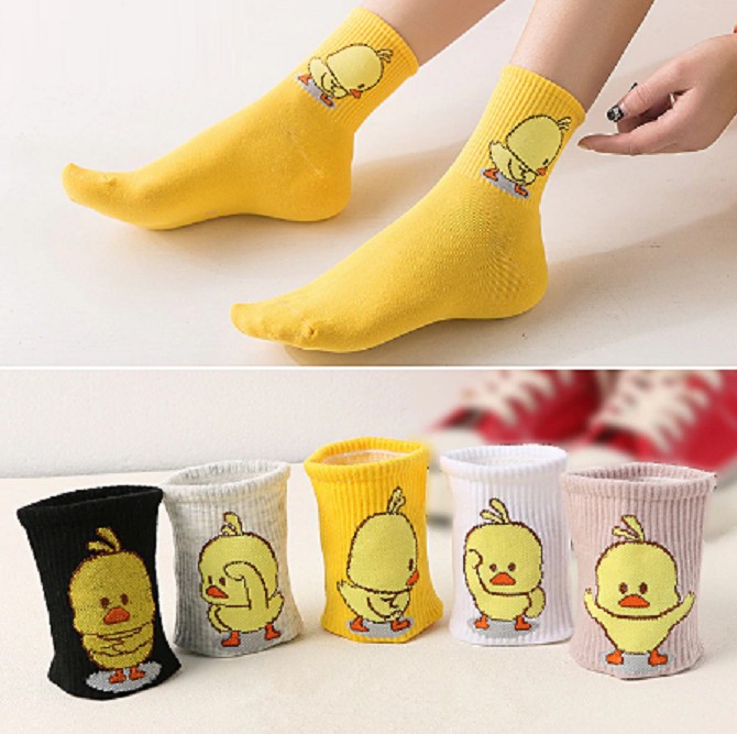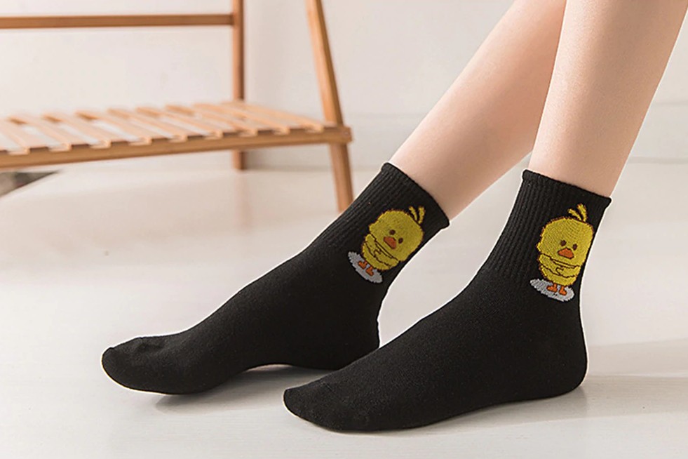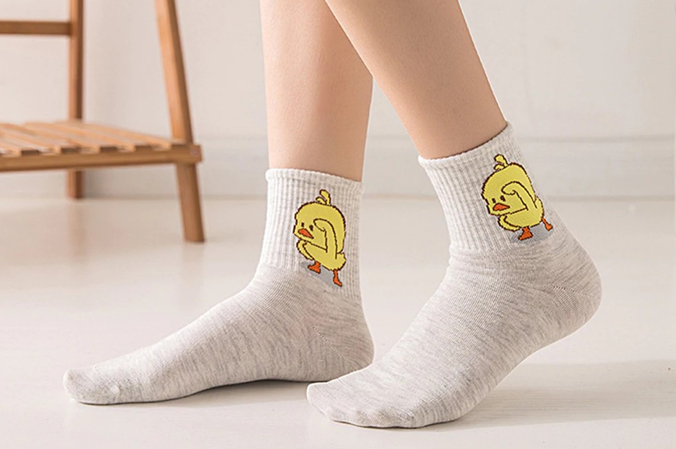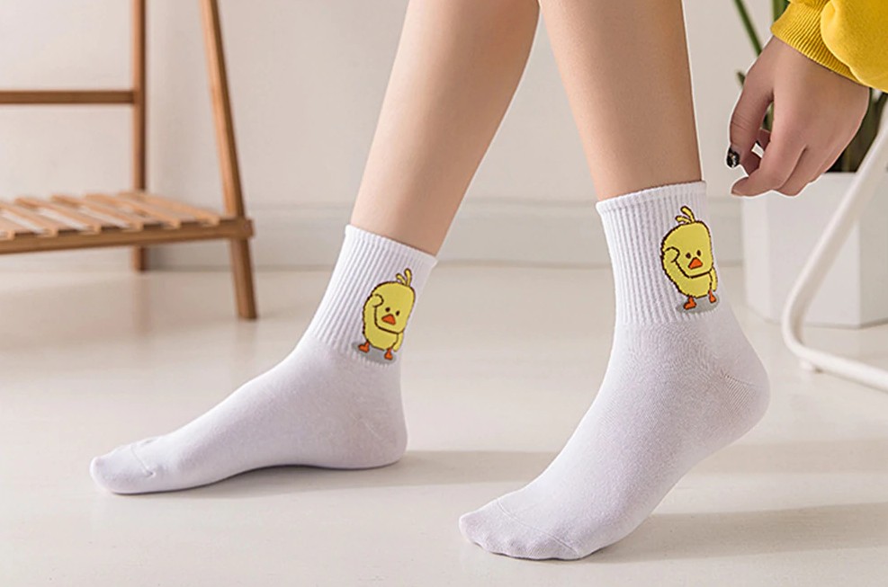 Le calze hanno un piccolo e adorabile pulcino sulla caviglia.