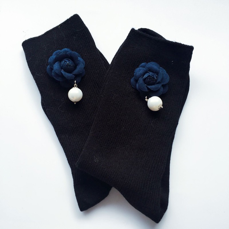 Le calze sono decorate con una bellissima rosa di tessuto e una piccola perla.