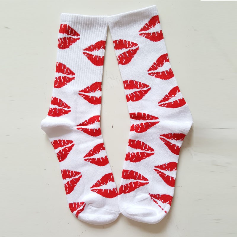 Adorerai queste dolci e romantiche calze con stampa di baci!