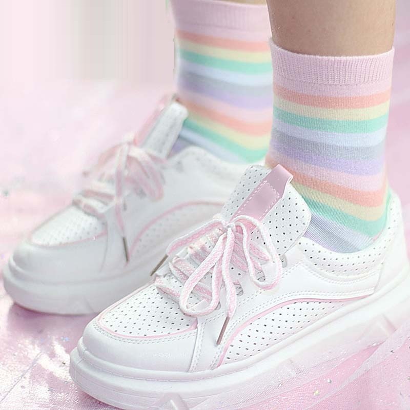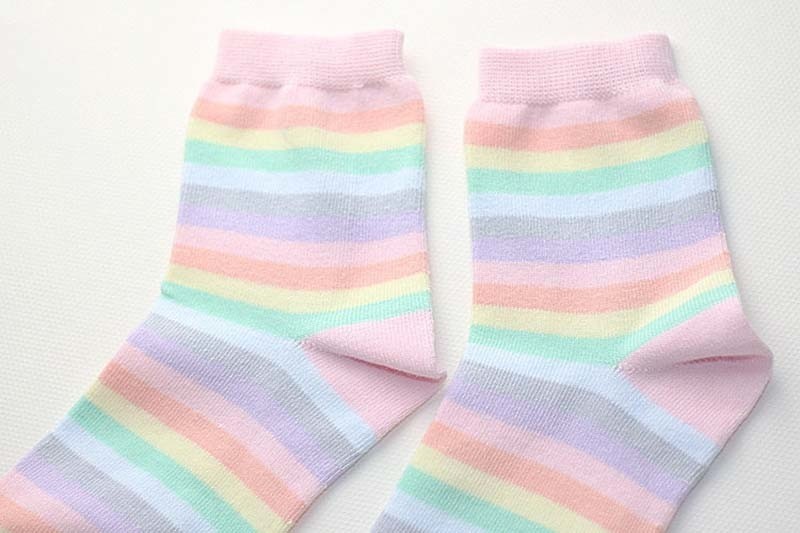 Le calze con strisce colorate sono molto eccentriche e alla moda!