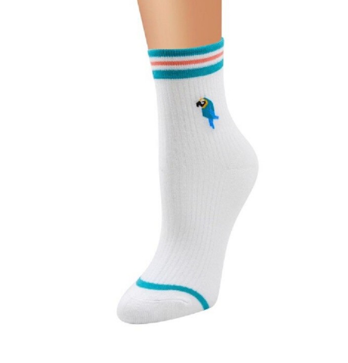 Le calze sono decorate con piccoli disegni di vari tipi di uccelli.