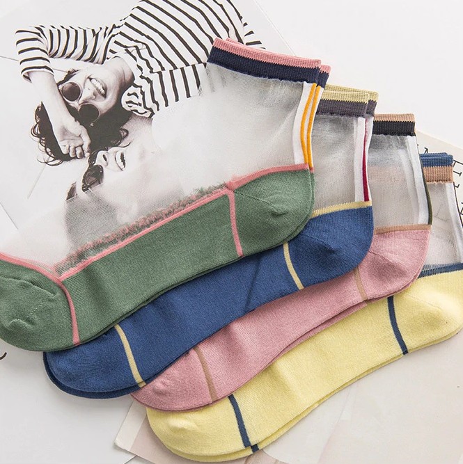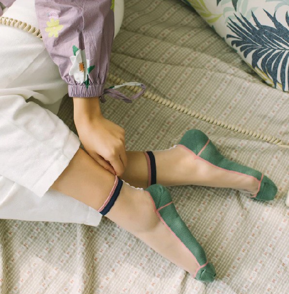 Le calze con un delicato bordo colorato possono essere abbinate magnificamente a scarpe e abbigliamento!
