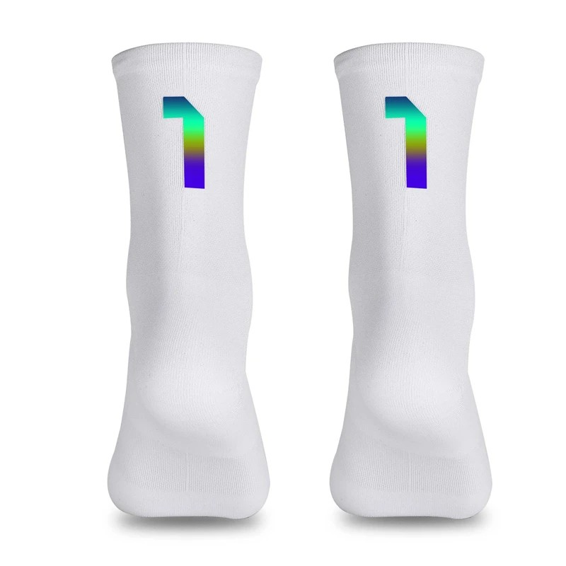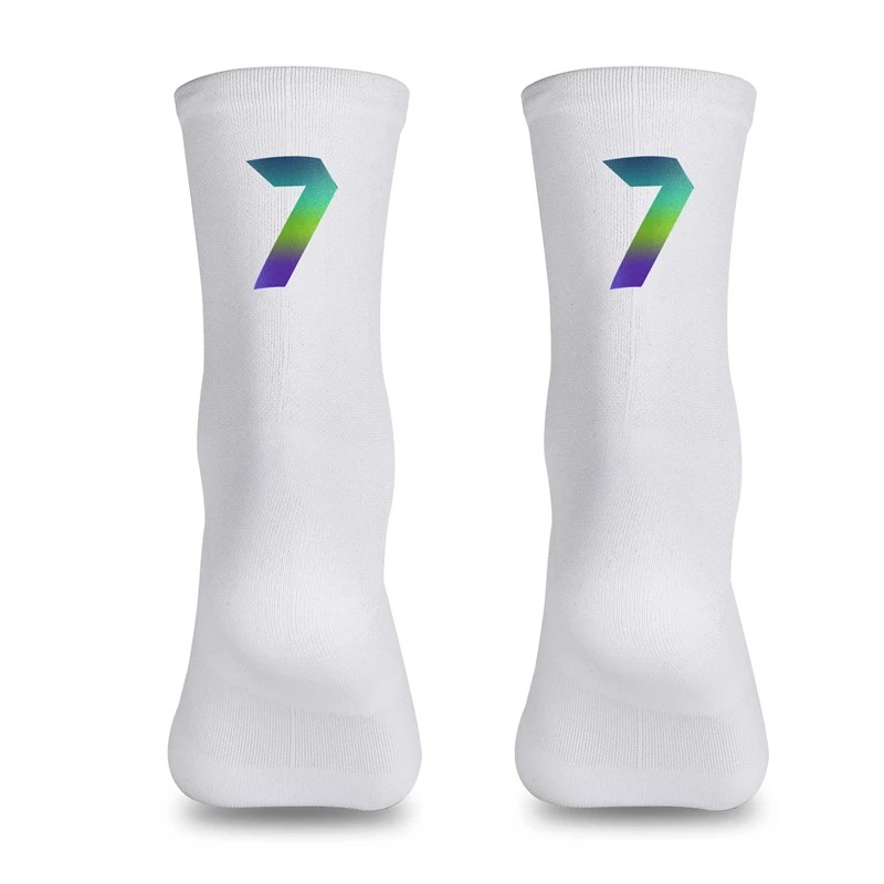 Calze bianche traspiranti di alta qualità per ciclismo, corsa e attività all'aperto. La tecnologia compressiva assicura supporto muscolare e migliori prestazioni sportive. Descrizione completa