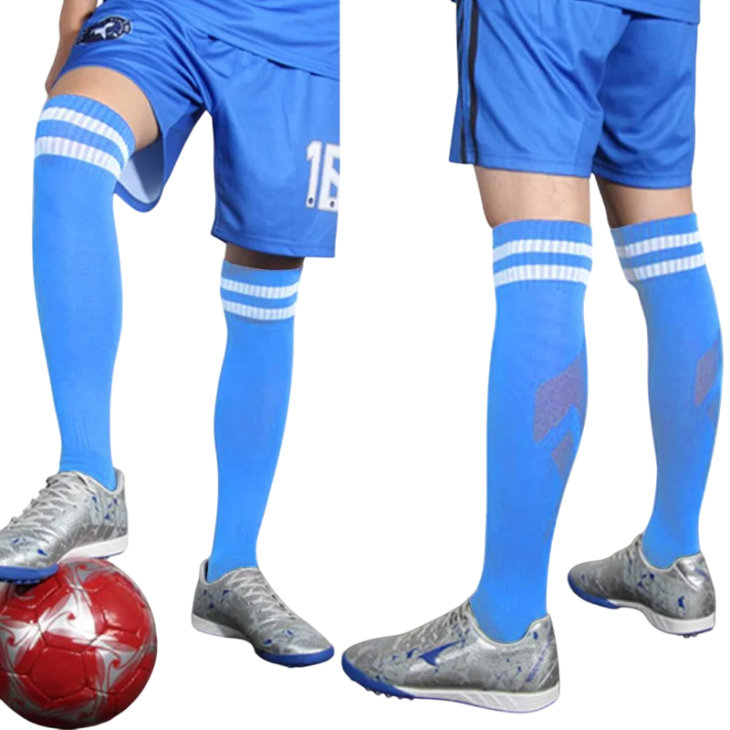 Calze da calcio di alta qualità per adulti, lunghe sotto il ginocchio, traspiranti e ad asciugatura rapida, che garantiscono comfort, protezione e stabilità durante lo sport. Descrizione completa