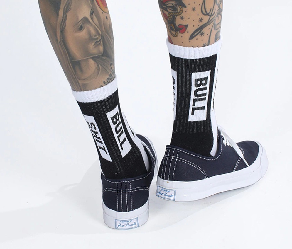 Le calze con scritta ricamata completano perfettamente i tuoi pantaloni corti e le scarpe sportive.