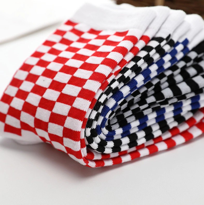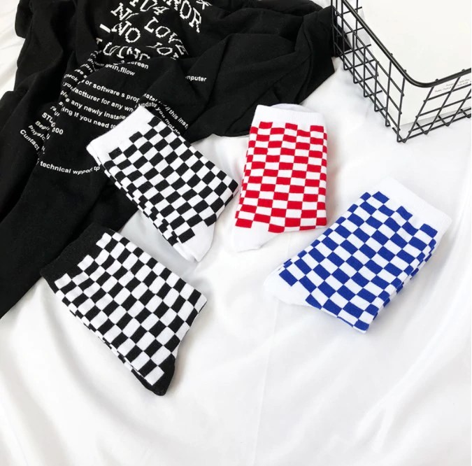 Queste calze in stile scacchiera vi piaceranno. Le calze sono realizzate in cotone di alta qualità.