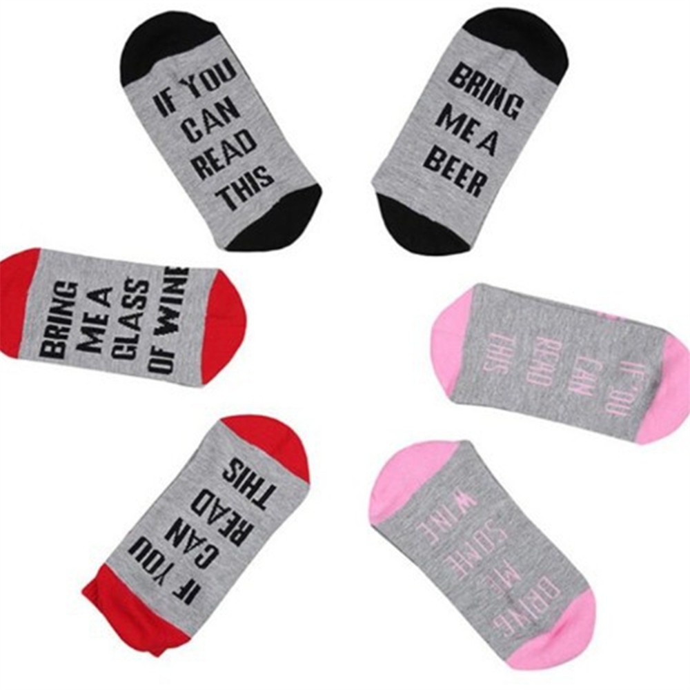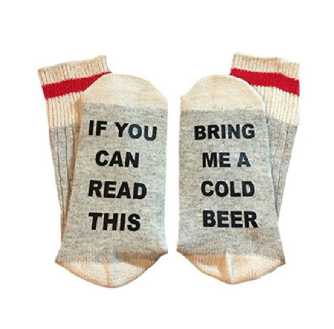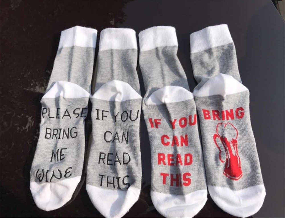 I calzini sono disponibili in diverse varianti con la scritta If You Can Read This, Bring Me a Cup of Wine, Coffee o Beer.