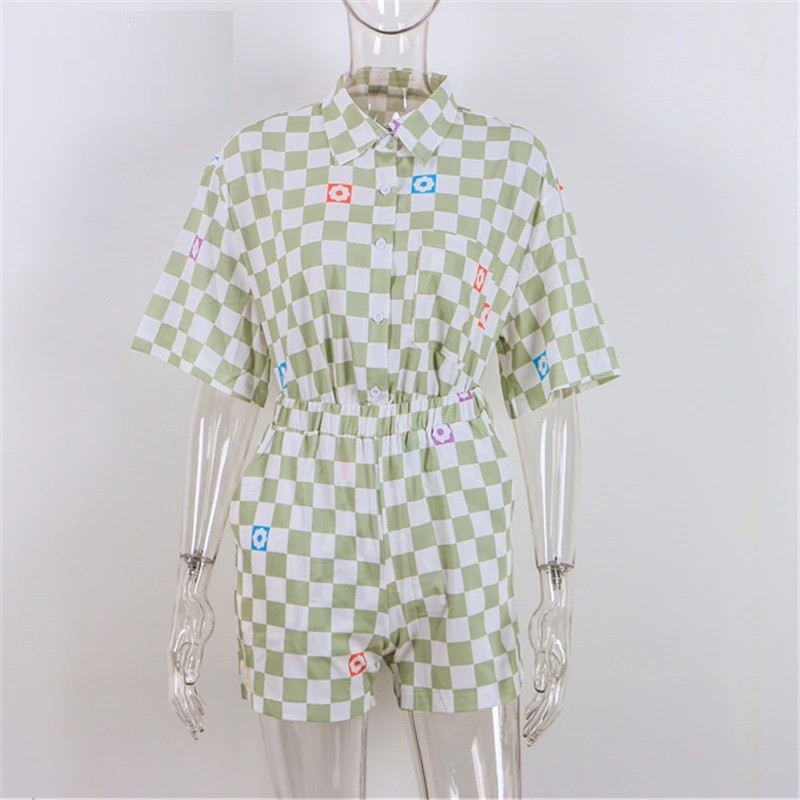Camicia a quadri da donna e pantaloni corti
