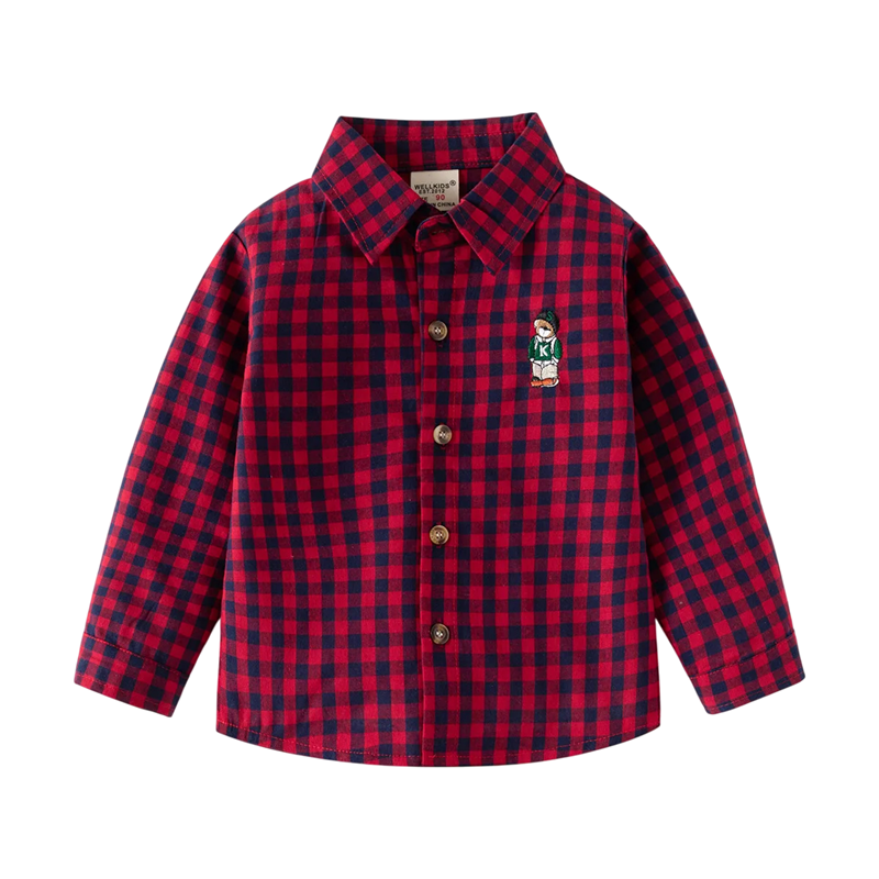 Camicia a quadri per bambini con colletto Camicia di cotone a maniche lunghe per ragazzi Neonati Top casual con bottoni Vari colori