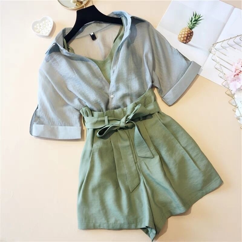 Camicia, canotta e pantaloni corti da donna