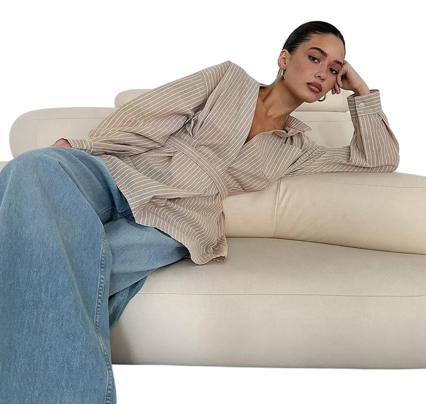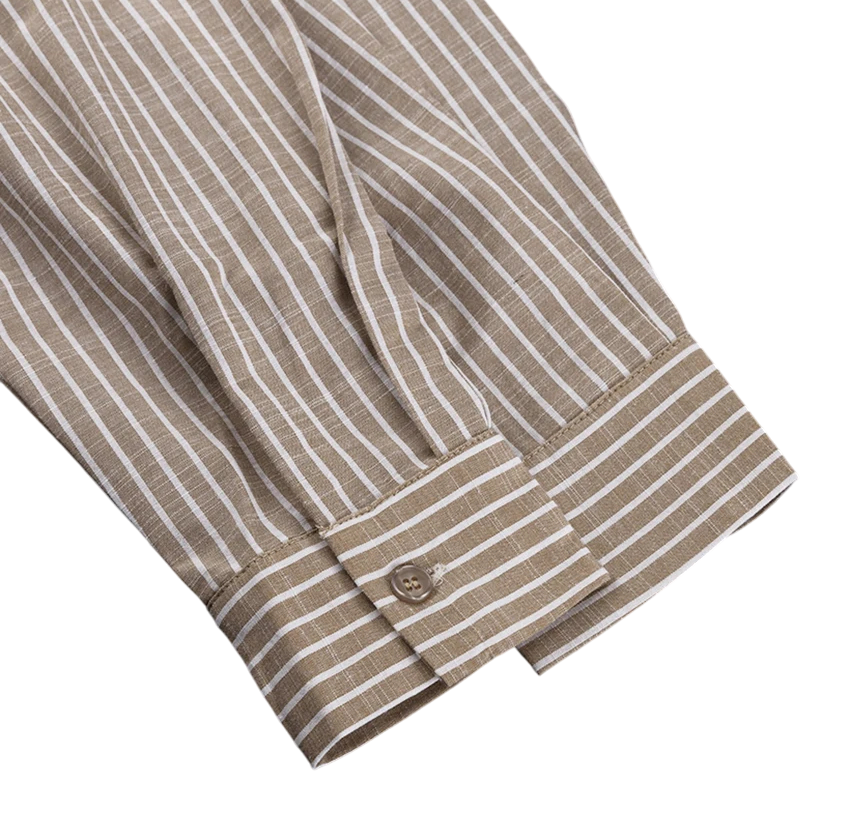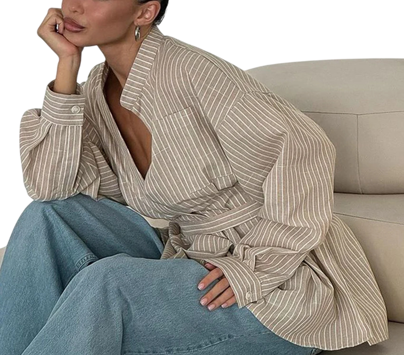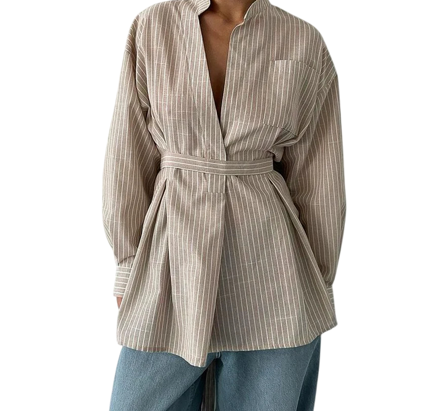 • Elegante camicia da donna in marrone con righe bianche
