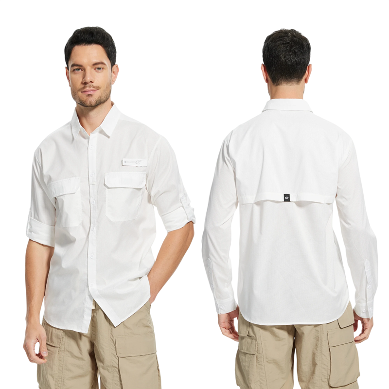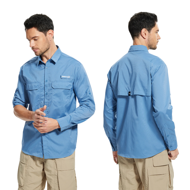 Camicia a tinta unita in poliestere con maniche lunghe, taschini e colletto classico offre un aspetto universale per lavoro e tempo libero. Descrizione completa
