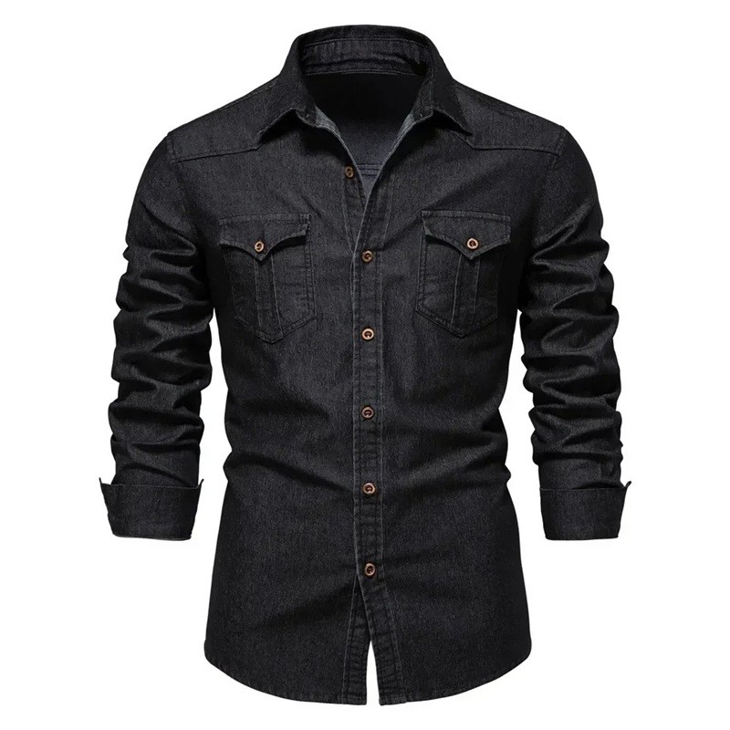 Camicia da uomo a maniche lunghe in tinta unita con colletto tasche chiusura con bottoni scollo a V cotone