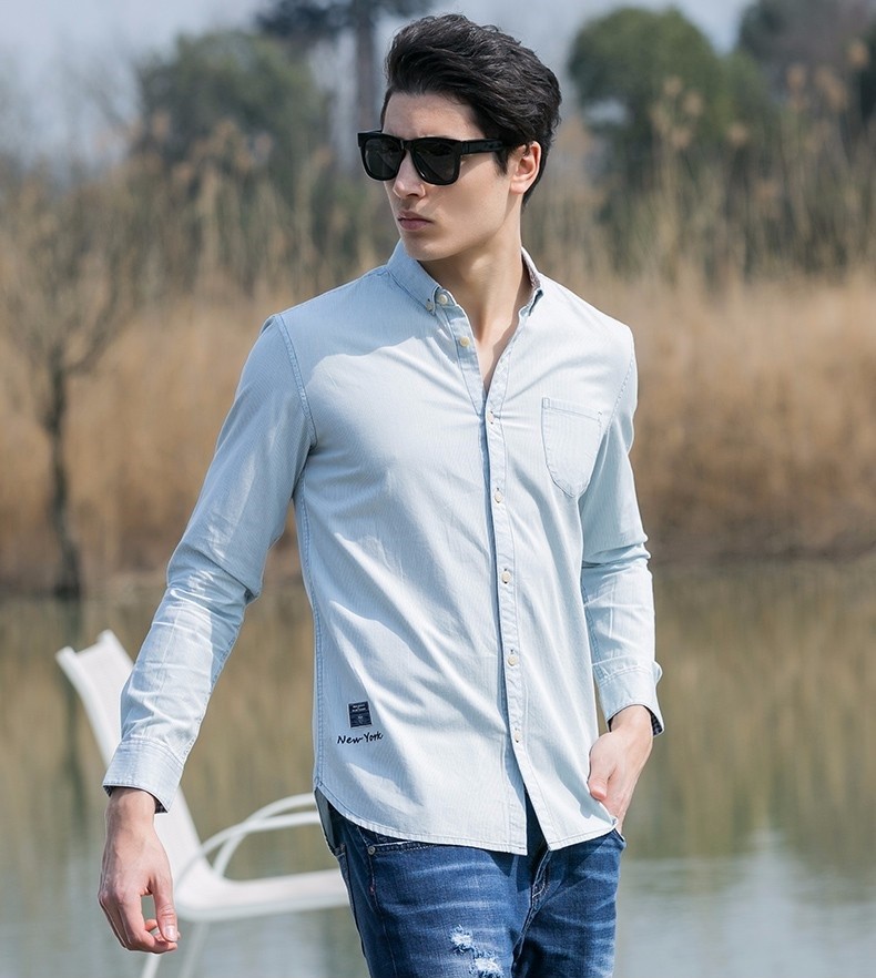 La camicia è di colore azzurro chiaro, che crea un'ottima impressione.