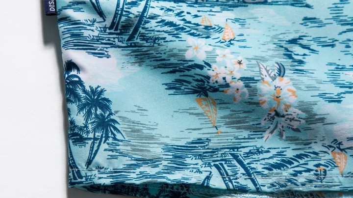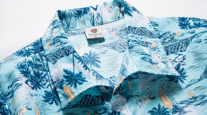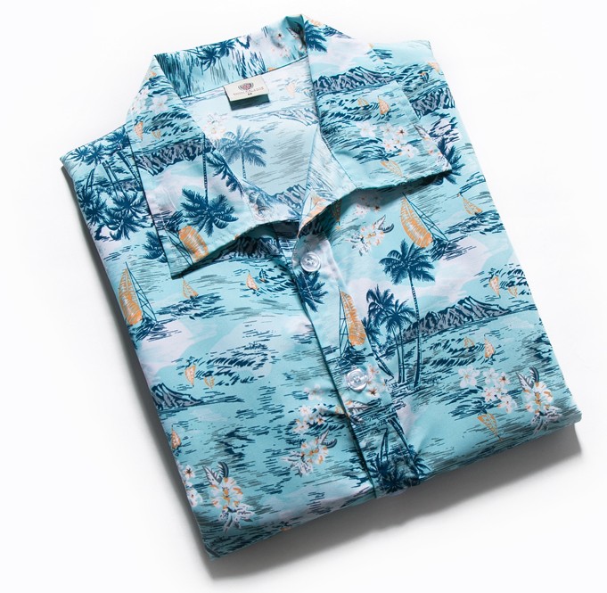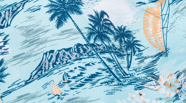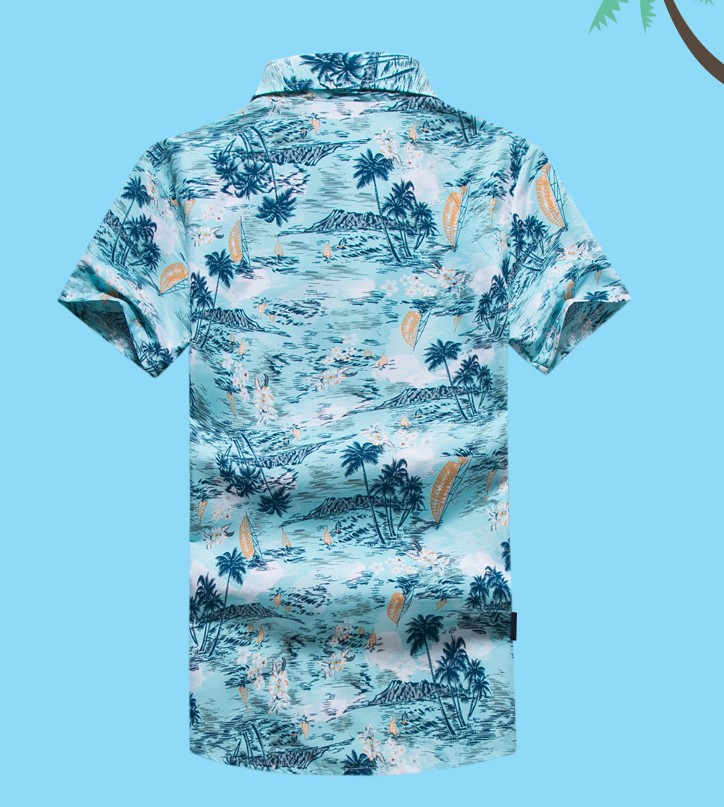Questa camicia ha una stampa di mare e palme. Ideale per l'estate.