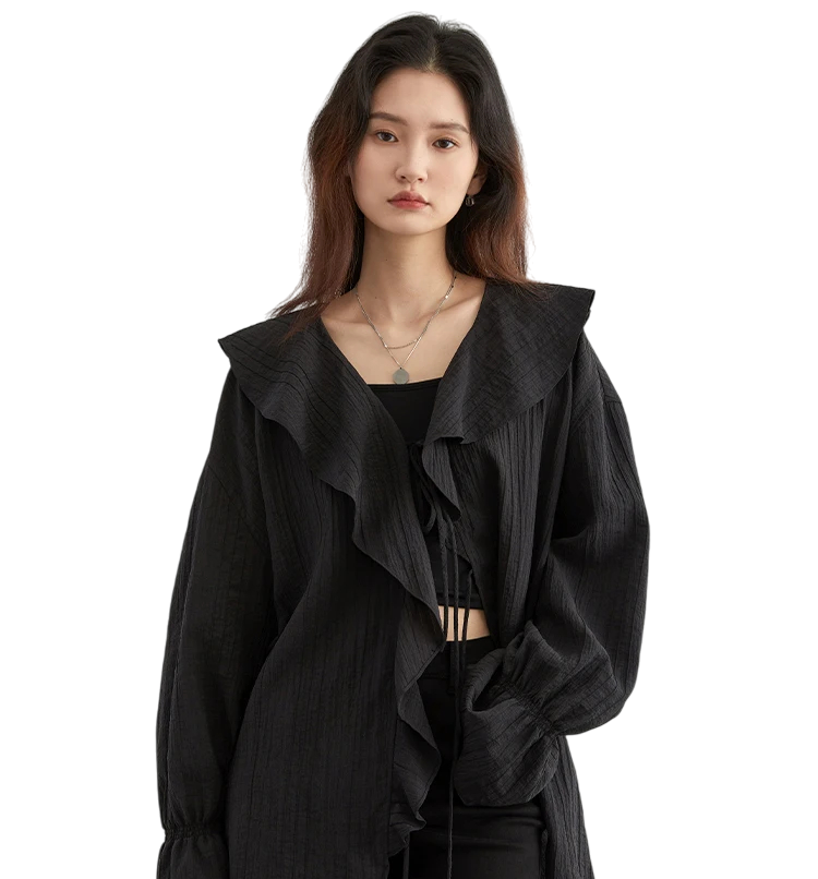 • Contenuto della confezione: 1× camicia elegante da donna con volant e chiusura con lacci