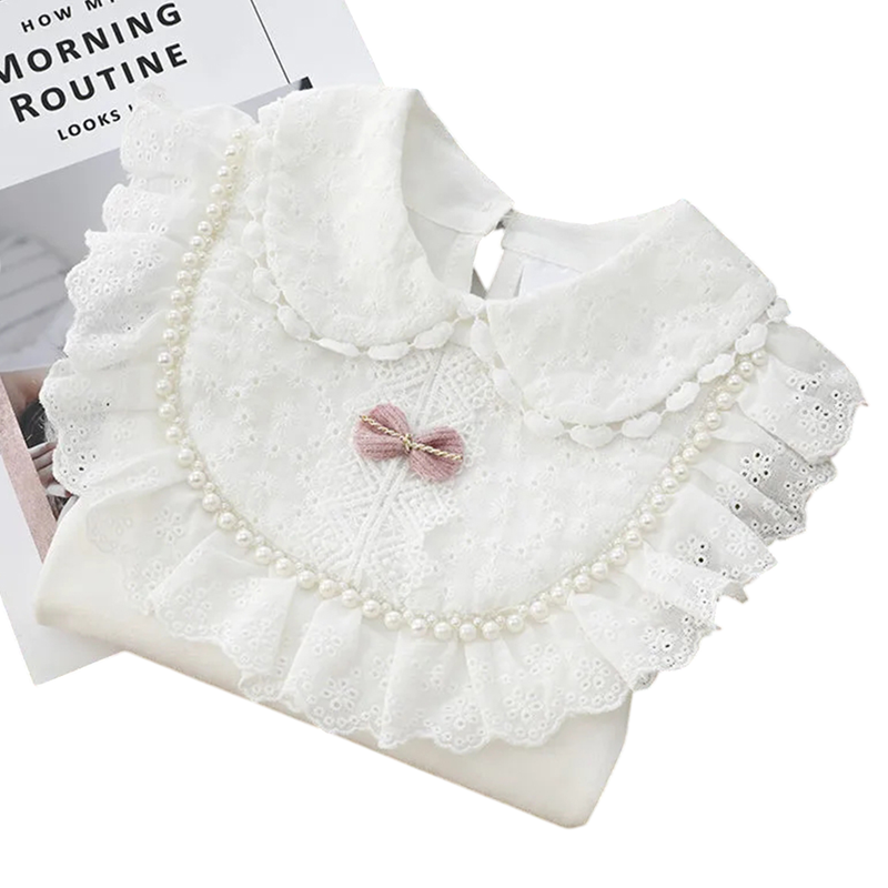 - Contenuto della confezione: 1× camicia bianca in pizzo per ragazze con colletto e maniche lunghe