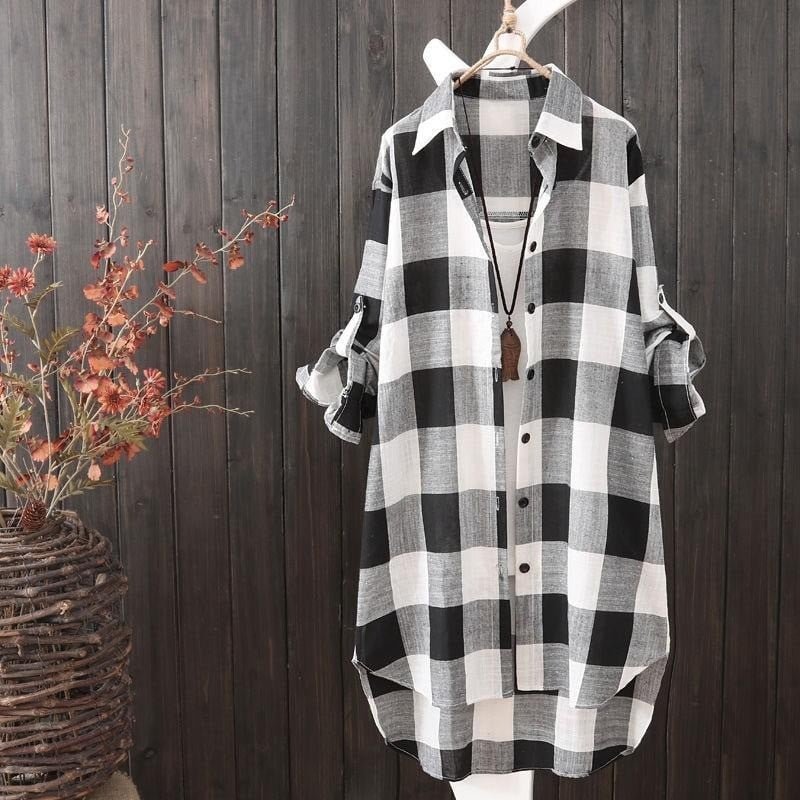 Camicia a quadri morbida per donne.