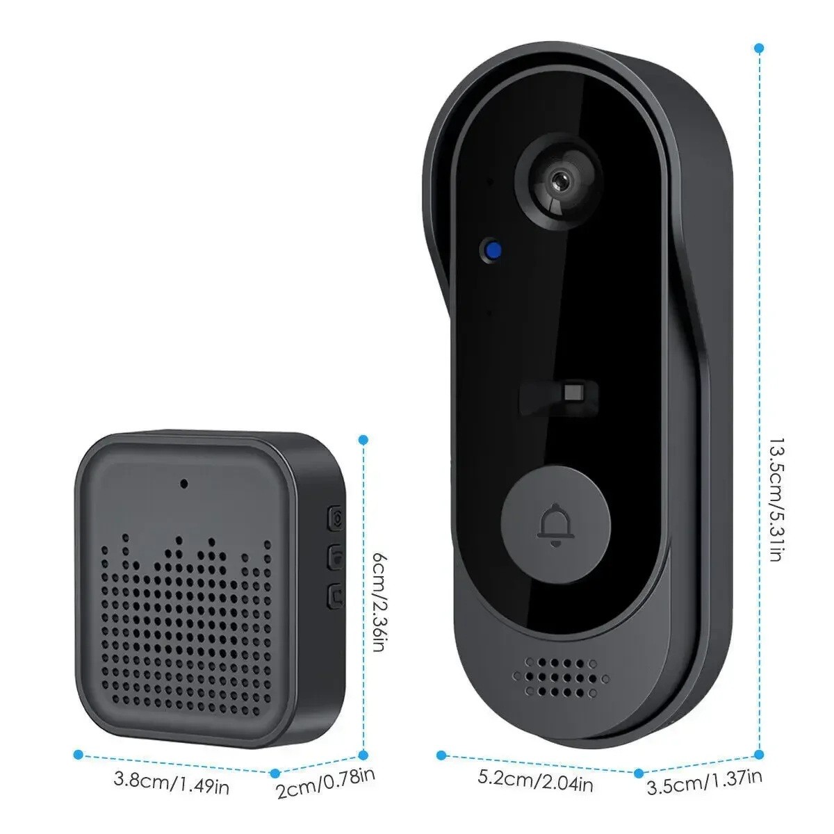 - Dimensioni del campanello: 13,5 × 3,5 × 2 cm
