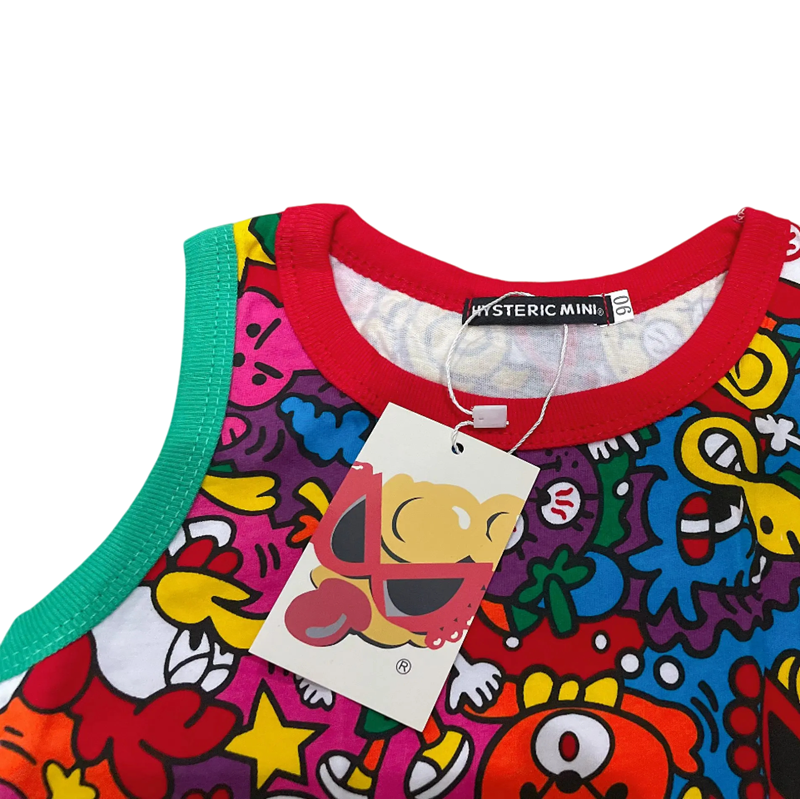 Canottiera estiva per bambini Hysteric Mini 100% cotone Canotta senza maniche per ragazzi e ragazze Stile anime con motivi colorati a fumetti O scollo Alta qualità