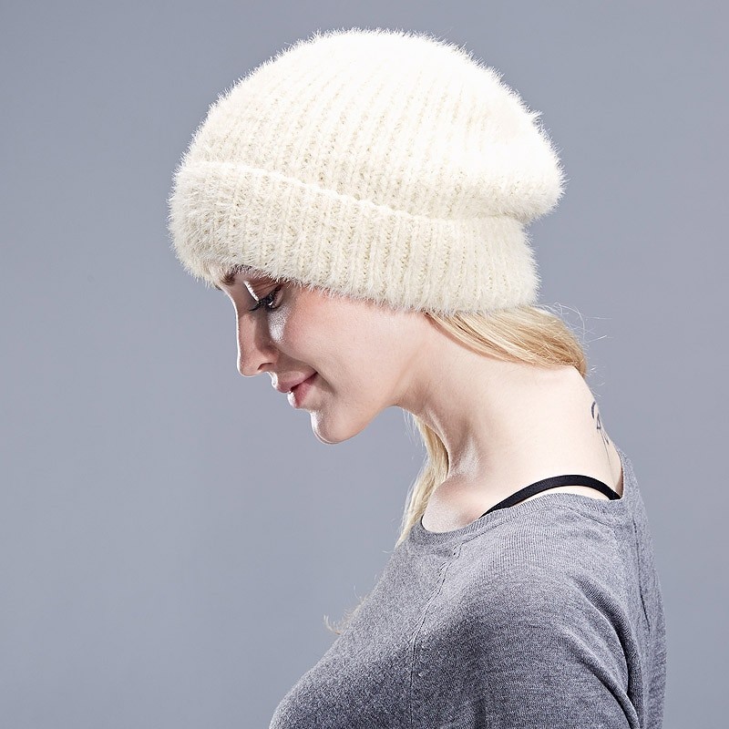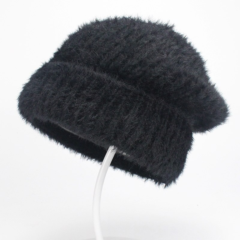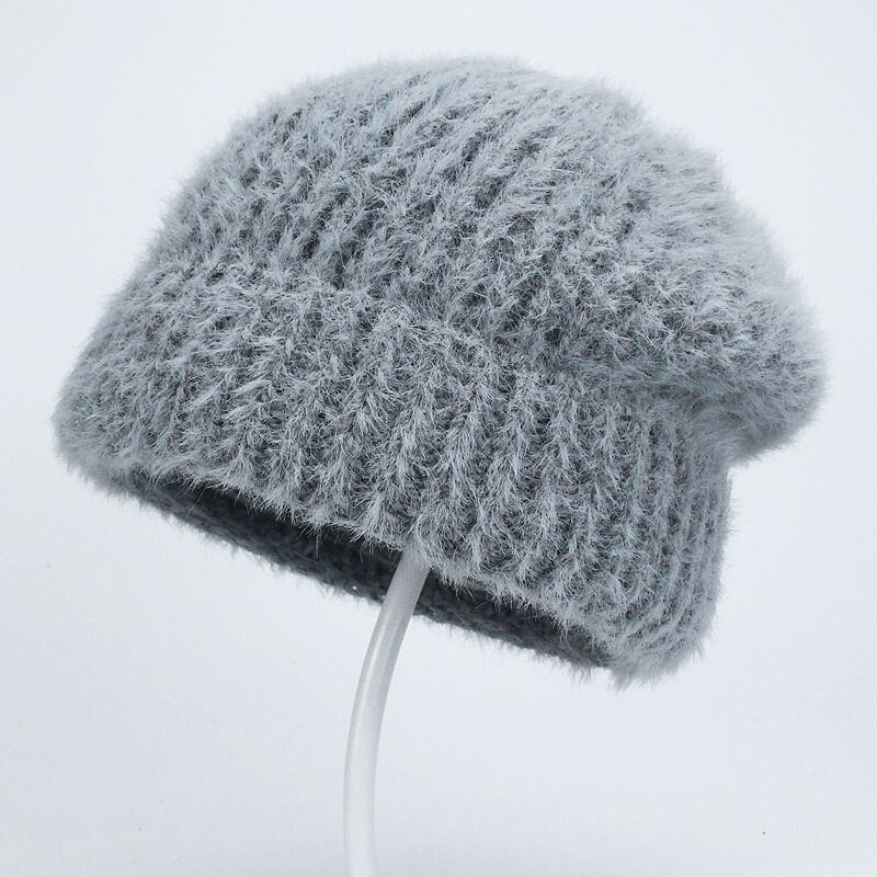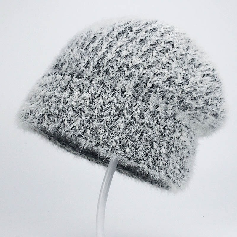 Cappello invernale lavorato a maglia con morbido pellicciotto.
