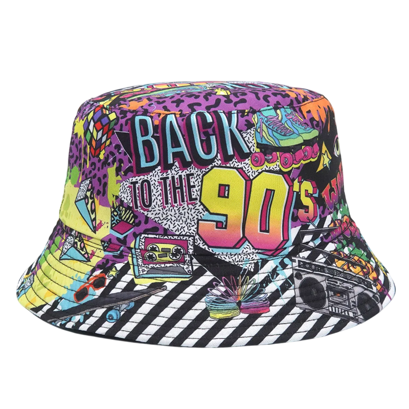 Cappello da pescatore in poliestere stile retro con stampa anni novanta Protezione estiva dal sole Accessorio di moda per il tempo libero