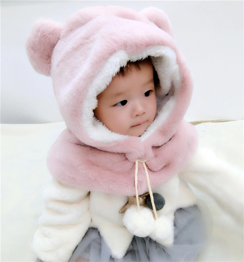 Cappello e scaldacollo in peluche invernale per bambini J868