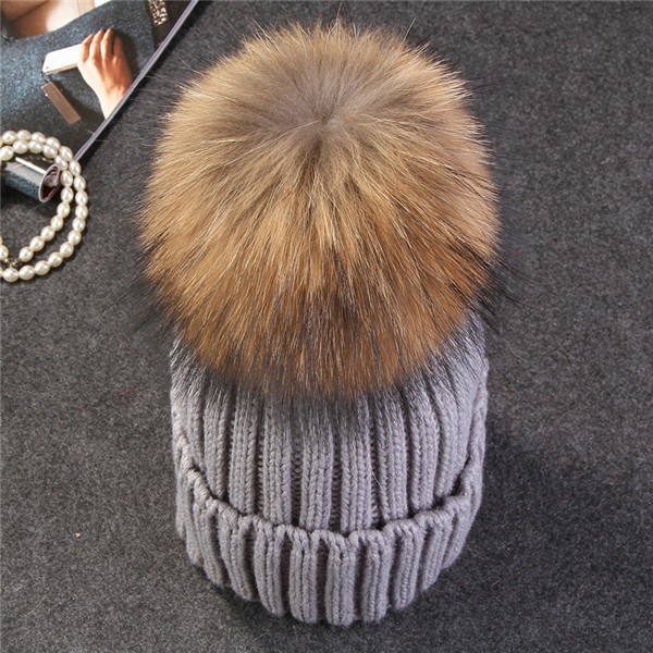 Cappello invernale moderno con pompon in pelliccia.