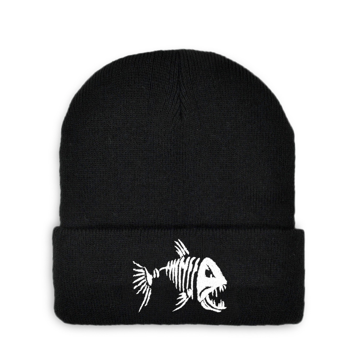 Cappello invernale nero con stampa di pesce