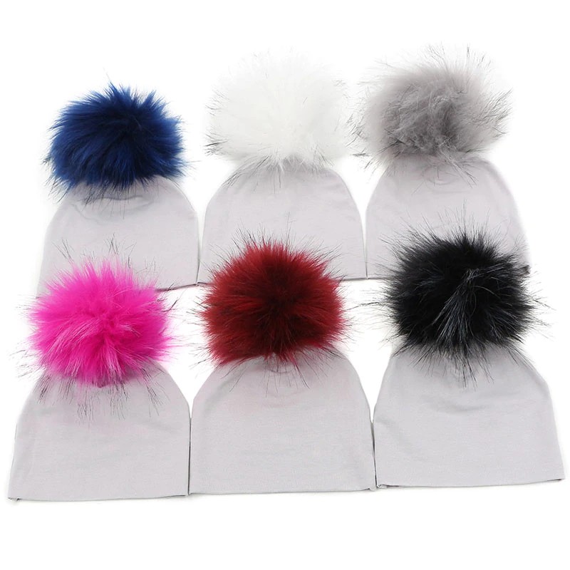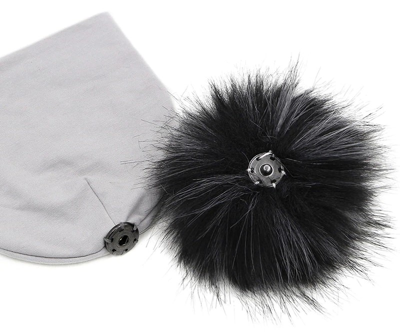 Questo cappello invernale grigio con pompon colorati terrà caldo il tuo bambino nei giorni freddi.