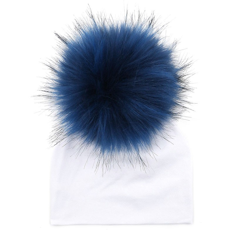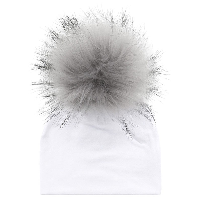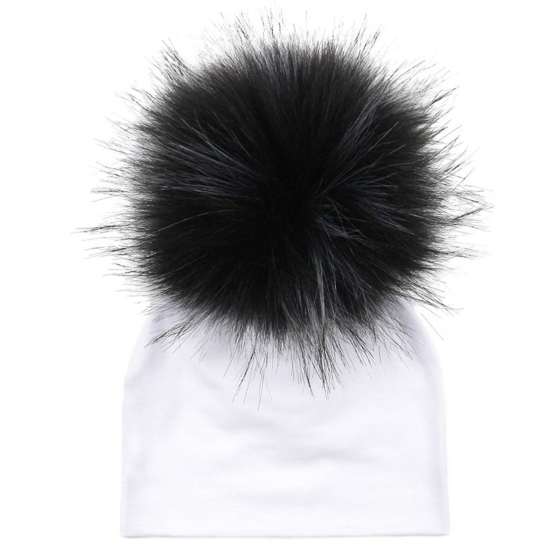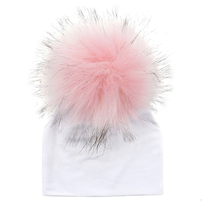 Questo cappello invernale di colore bianco con pompon colorati tiene calda la testa dei vostri bambini.