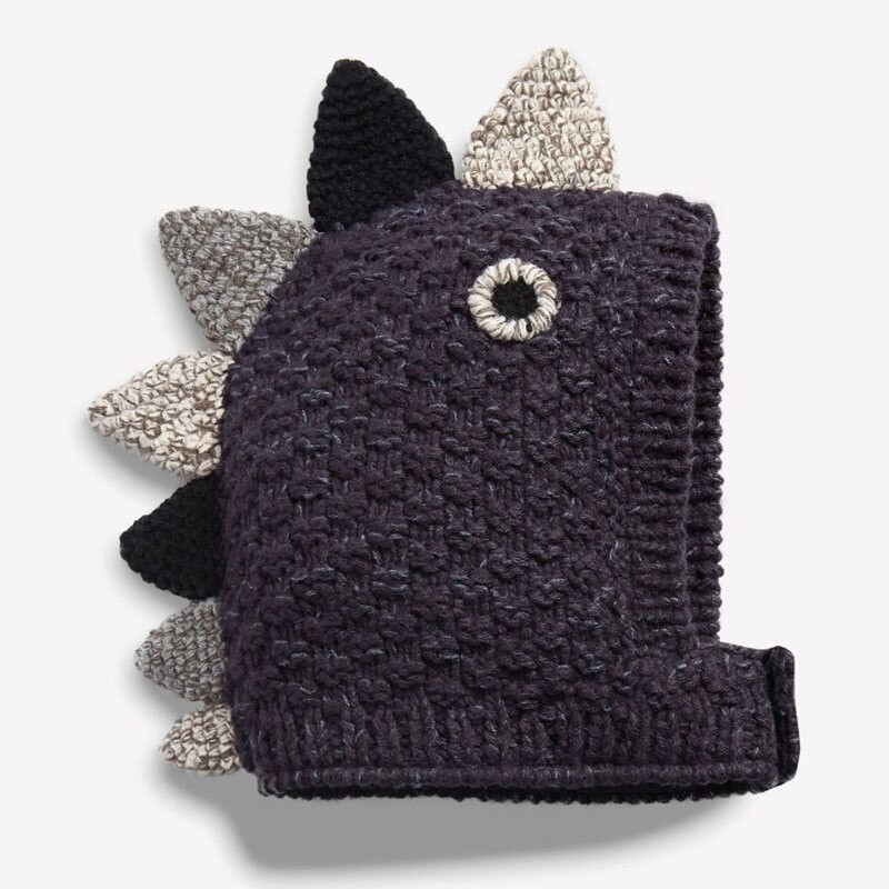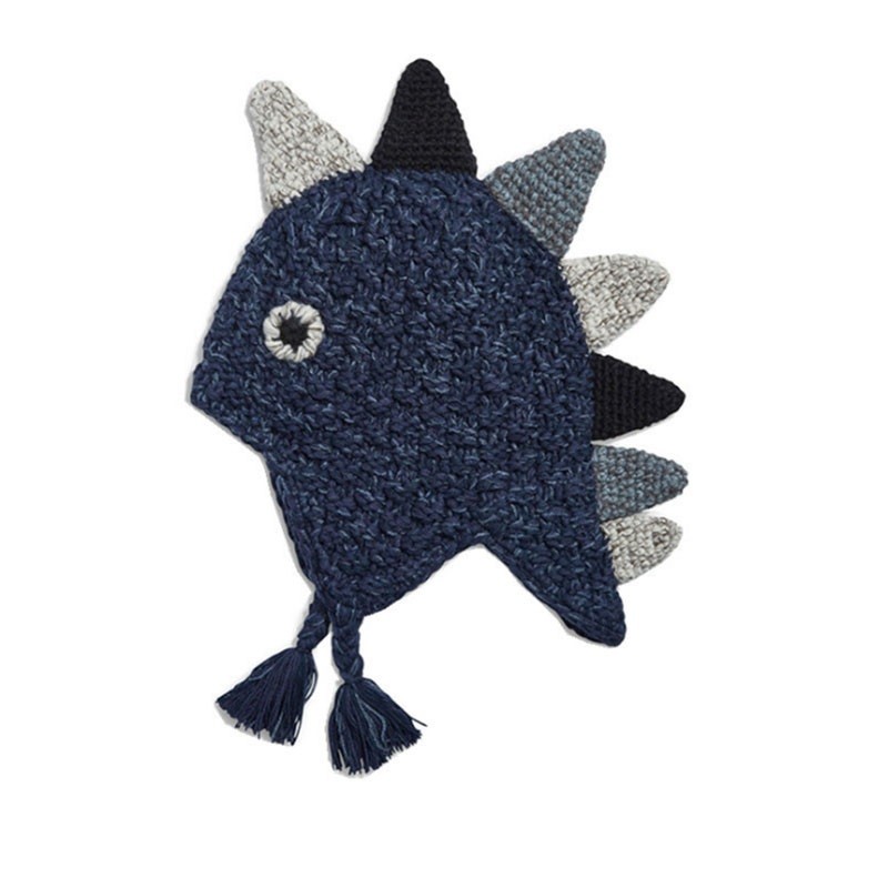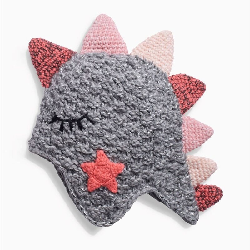 Cappello a maglia colorato per bambini con orecchie - motivo dinosauro.
