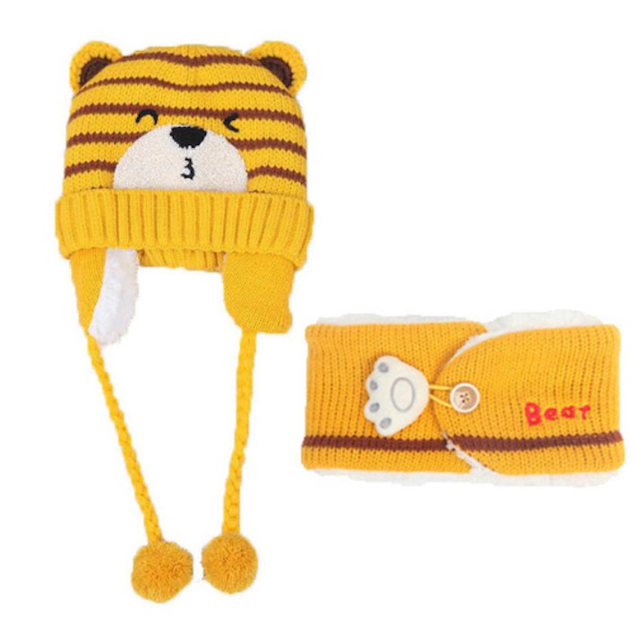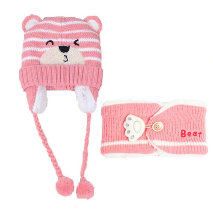 Cappello invernale per bambini e scaldacollo con orsetto