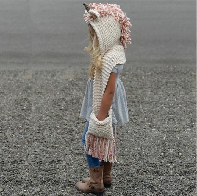 Cappello invernale per ragazze con sciarpa in stile unicorno J1291