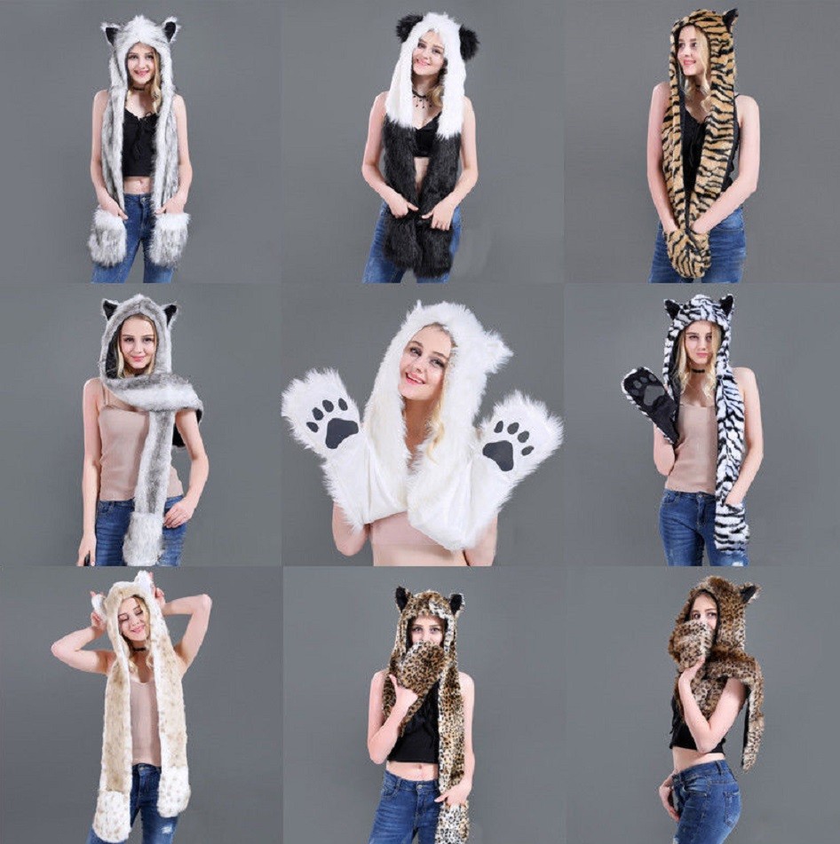 Cappello divertente a tema animale con superficie pelosa in pelliccia sintetica.