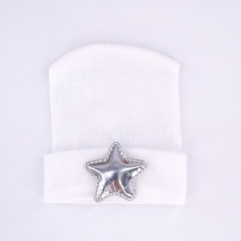 Cappello bianco in cotone con applicazione a forma di stella in colori metallici.