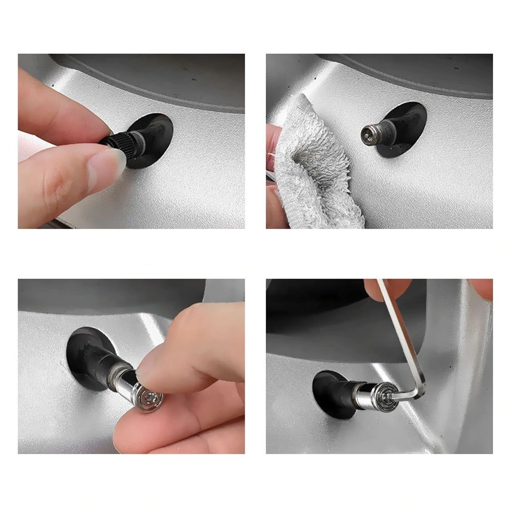 Contenuto della confezione: 4x cappucci per valvole, 1x chiave a brugola