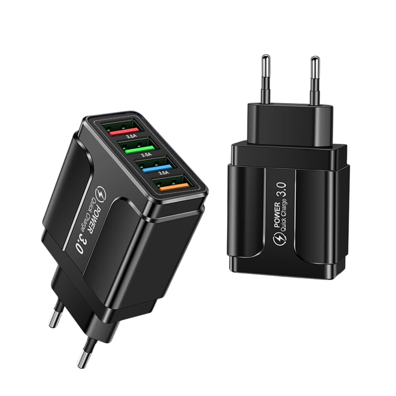Questo caricabatterie USB è la soluzione perfetta per gli utenti che necessitano di ricarica affidabile e veloce per più dispositivi contemporaneamente. Quattro porte consentono di caricare telefono, tablet, smartwatch e altri accessori contemporaneamente, senza perdita di potenza. Il supporto QC 3.0 accelera notevolmente il processo di ricarica e ti fa risparmiare tempo. Il corpo compatto e la spina europea garantiscono un utilizzo comodo in qualsiasi ambiente, che tu sia a casa, in ufficio o in viaggio. Grazie al controllo intelligente della corrente, la tua elettronica sarà sempre protetta e caricata in modo efficiente.
