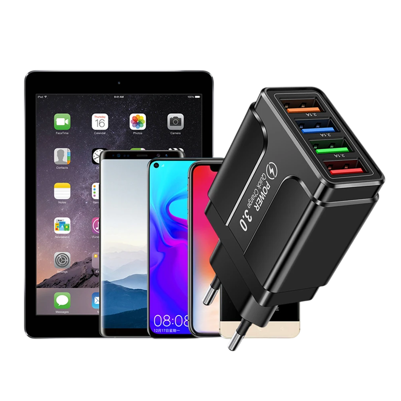 Pagina iniziale Pagina iniziale Smartphone, smartwatch e tablet Accessori per smartphone Caricabatterie per telefoni e tablet Caricabatterie rapidi per telefoni e tablet Caricabatterie rapido 4× USB A QC 3.0 5V 3.1A caricabatterie veloce con spina EU adattatore di ricarica per telefono cellulare ricarica rapida più dispositivi