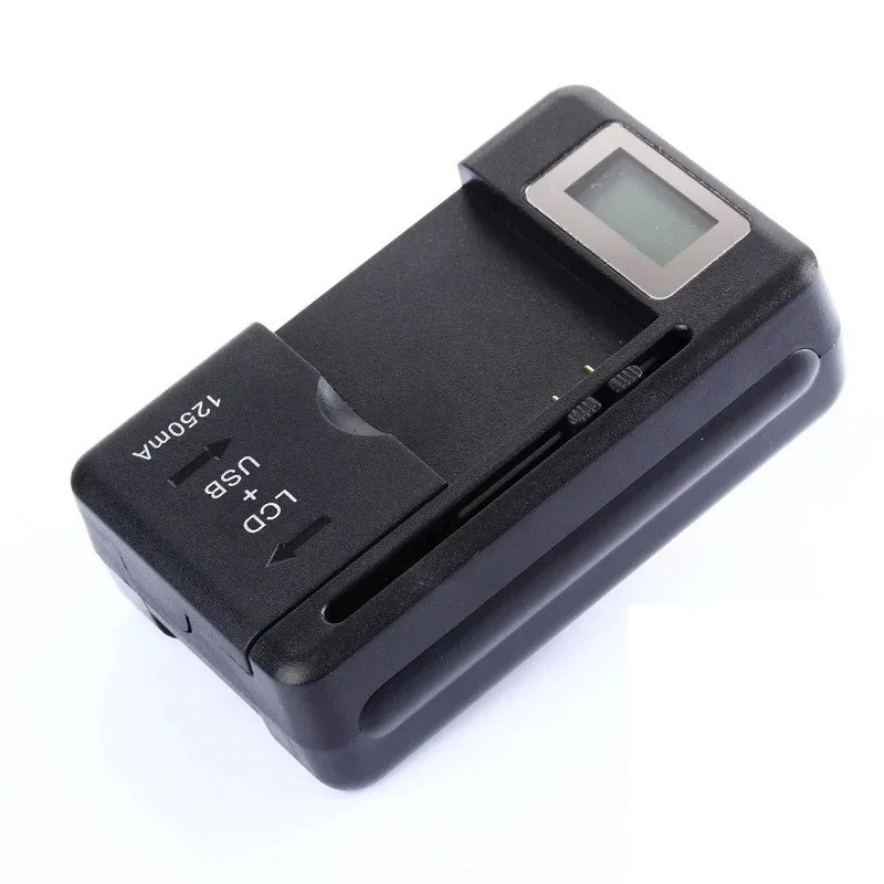 Pagina iniziale Pagina iniziale Foto, audio-video e gaming Caricabatterie universale per batterie mobili con display LCD e uscita USB spina EU Caricamento batterie 32–55 mm per telefoni cellulari